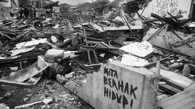 - Warga Kampung Akuarium, Jakarta Utara, yang digusur pada 2016 lalu kemudian membangun kembali rumah secara kolektif dengan dukungan arsitek dan LSM.